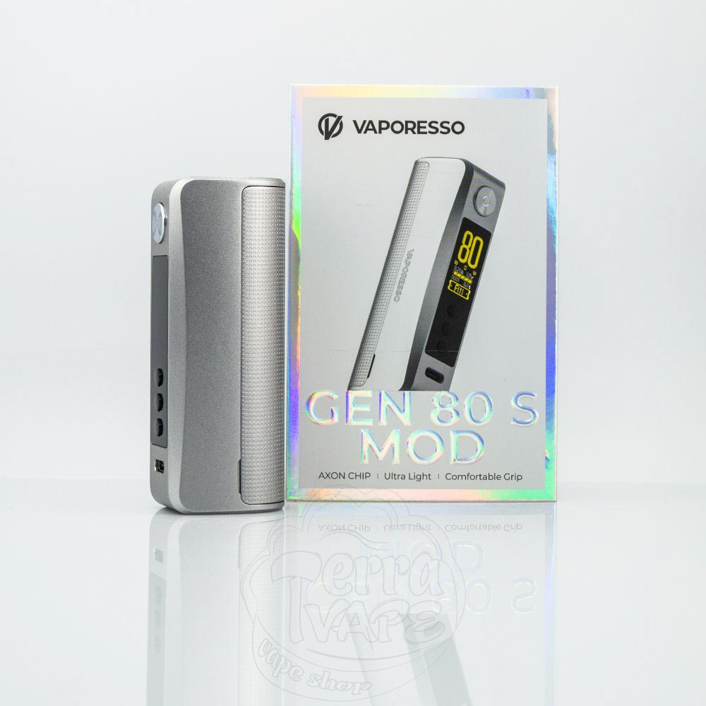 Vaporesso Gen 80S Mod 80W – це бокс мод від компанії Vaporesso з максимальною вихідною потужністю 80Вт. Працює від одного знімного акумулятора формату 18650 та піднімає опір від 0.1Ом. Посадковий майданчик – до 25мм. Легкий та компактний – ідеальний мод для сетапу з односпіральним атомайзером.