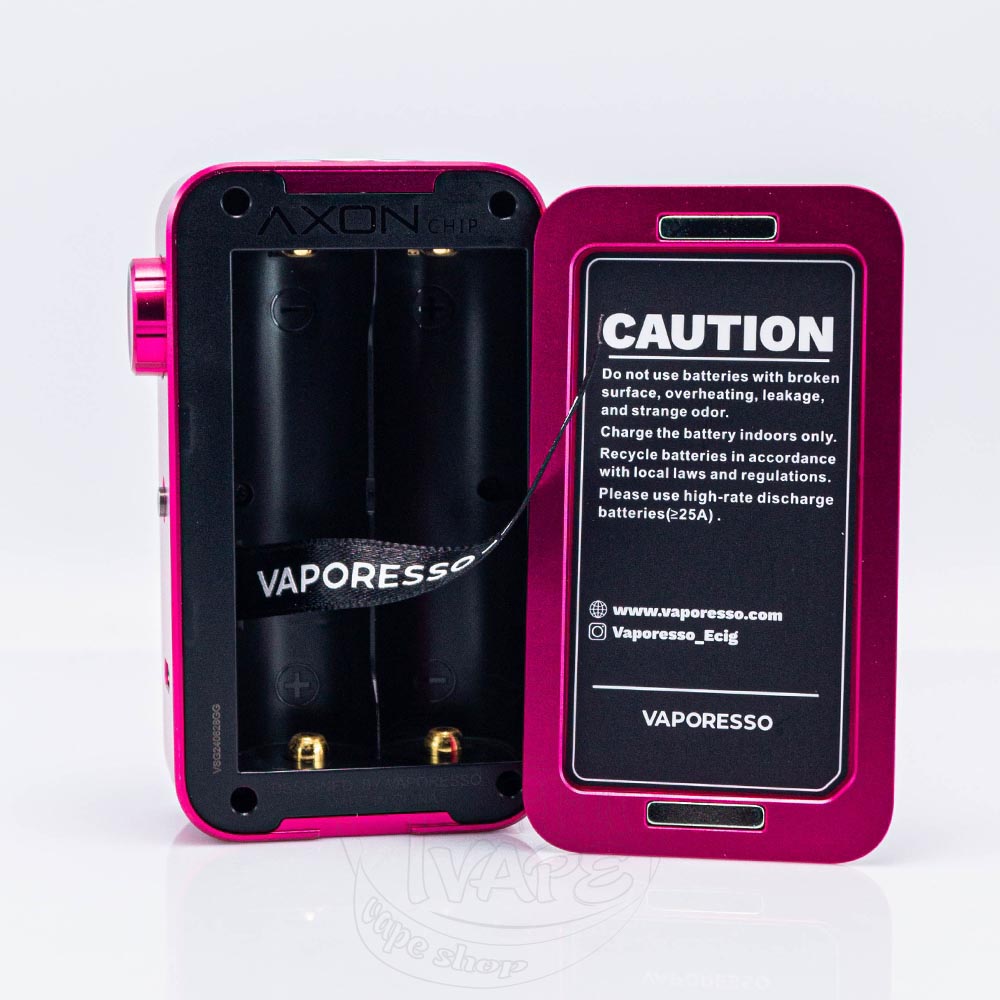 Для початку роботи Ген Макс потрібно встановити два акумулятори формату 18650. Зверніть увагу! Елементи живлення не входять до комплектації! Придбати акумулятор за вигідною ціною ви зможете в інтернет-магазині TerraVape. Кришка батарейного відсіку міцно тримається на потужних магнітах. Її можна легко зняти, піддівши за невеликий виріз у нижній частині. Під панеллю ви побачите два відсіки з позначеною полярністю та брендованою стрічкою, яка допоможе вам дістати акумулятори.