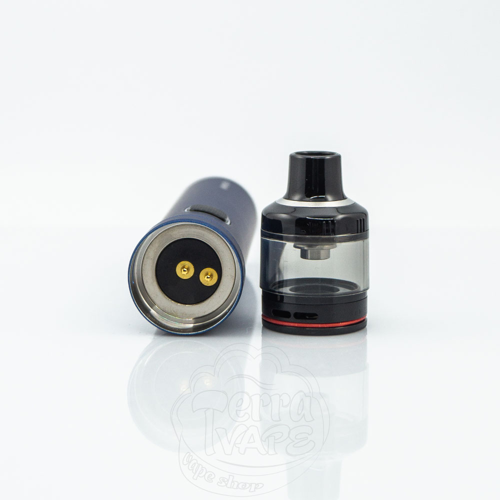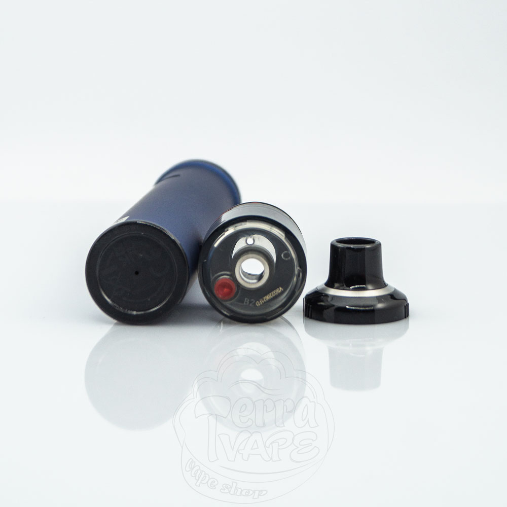 Надежно прикрепленный к верхней части батарейного блока с помощью 4 мощных магнитов, картридж GTX 26 включает в себя большой резервуар объемом 5 мл и обладает множеством достоинств. В отличие от большинства картриджей представленных на рынке, этот открывается сверху (как классический атомайзер) и обеспечивает чистую заправку без малейшего риска протечки. Давление на мундштук и легкий поворот на четверть оборота открывают верхнюю крышку.