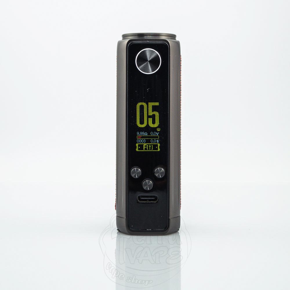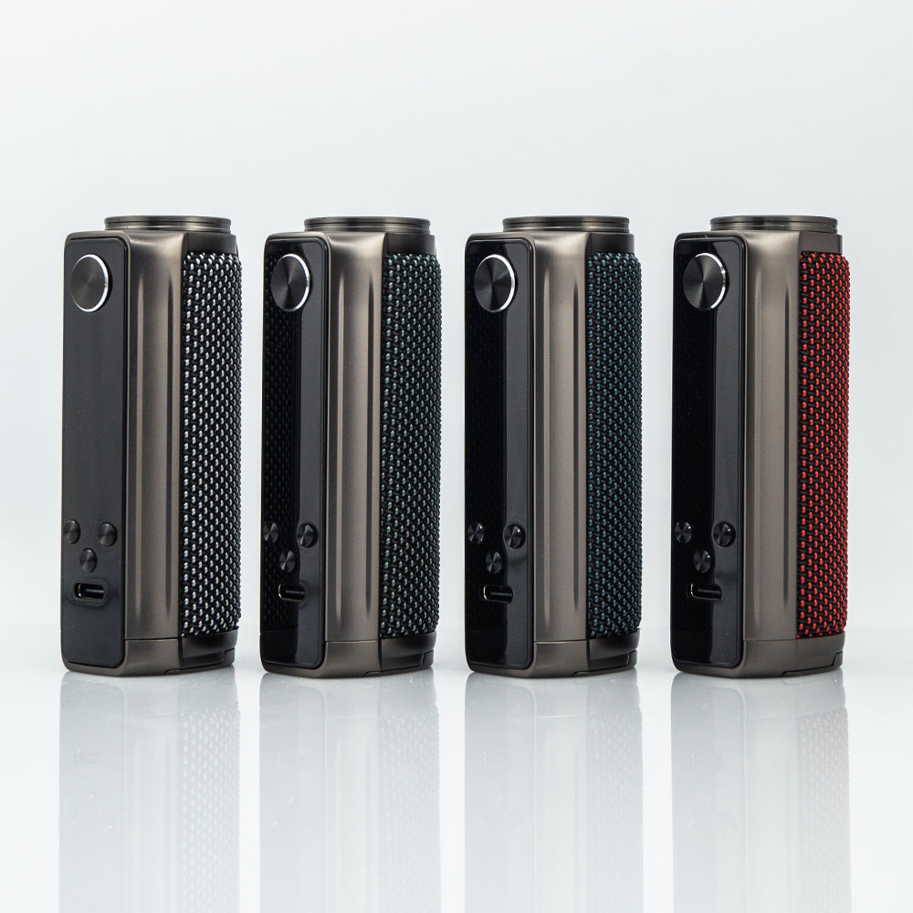 Корпус має овальну форму для зручного та чіпкого хвату, рама – міцна та виконана з металу. Водонепроникне покриття, окрім захисної функції, забезпечує приємні тактильні відчуття. Це відносно компактний мод для використання із батареєю формату 21700.