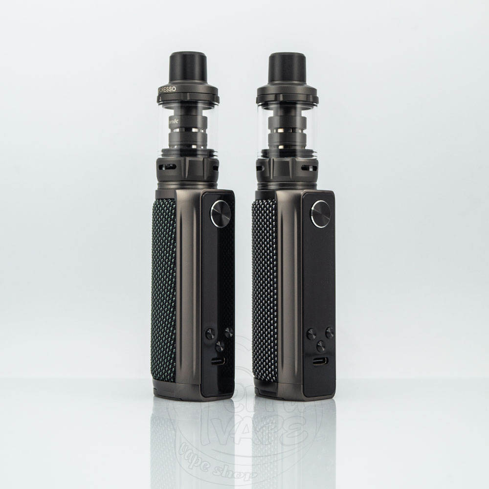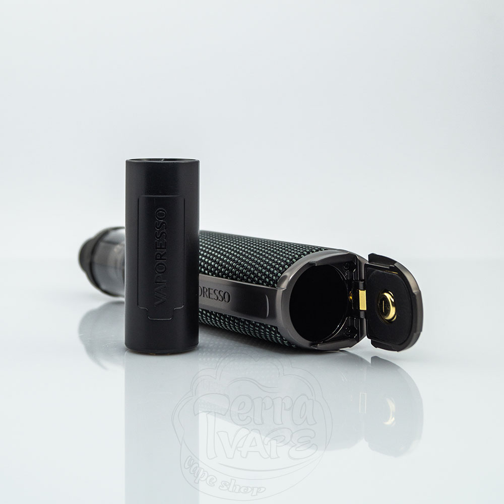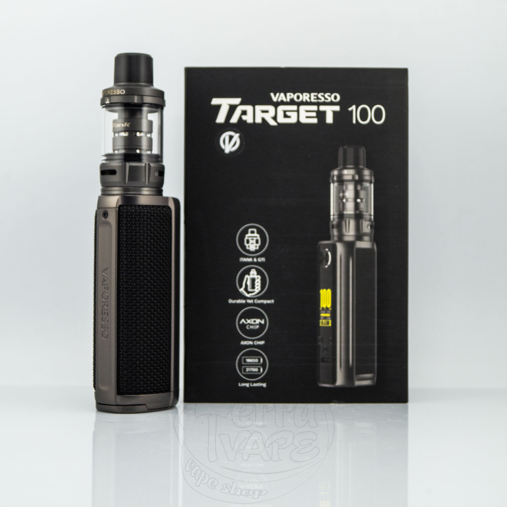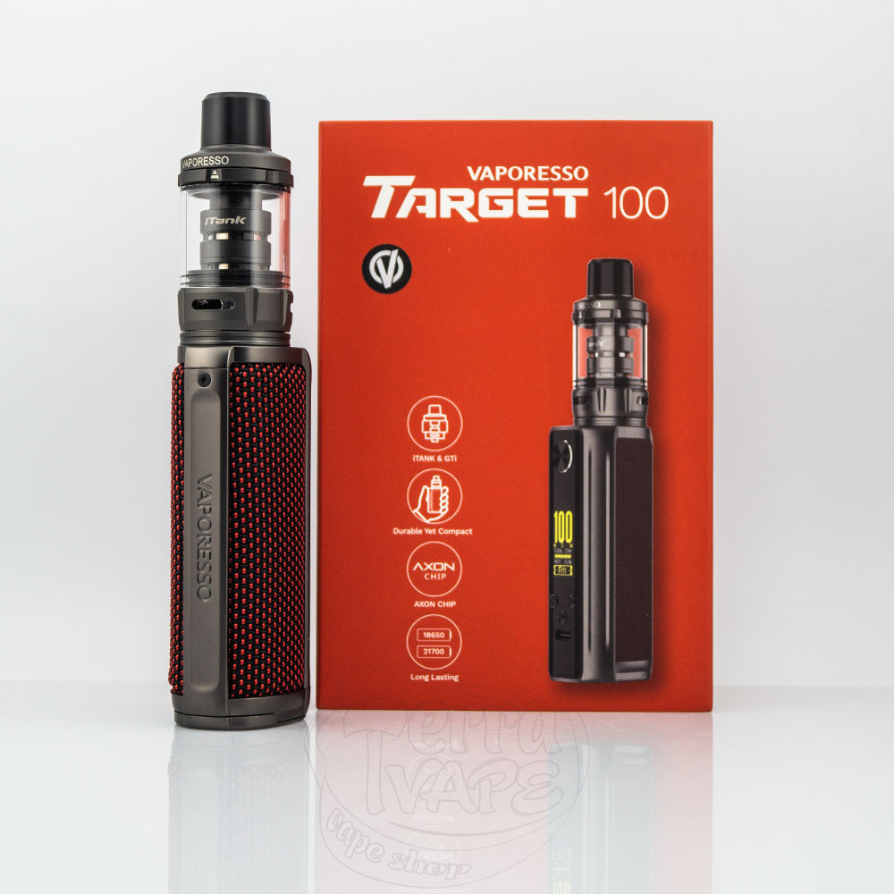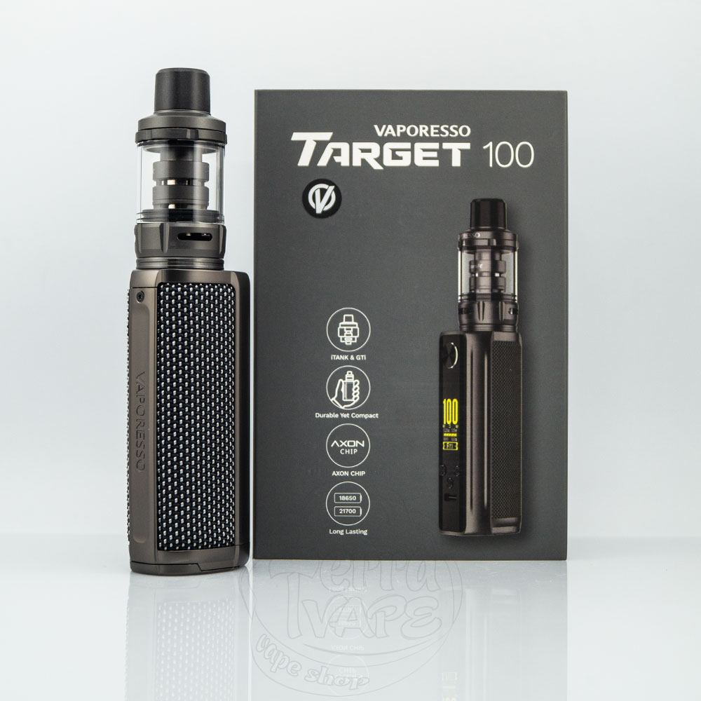 При высоте 87.6мм и диаметре 35мм бокс мод имеет высококлассную отделку и предназначен для самых требовательных вейперов. Он имеет регулируемую мощность от 5Вт до 100Вт. Премиальный дизайн последних наборов Target характеризуется покрытием из плетеной ткани или текстурированной кожи. На дне корпуса находится надежный люк, позволяющий получить доступ к батарейному отсеку.