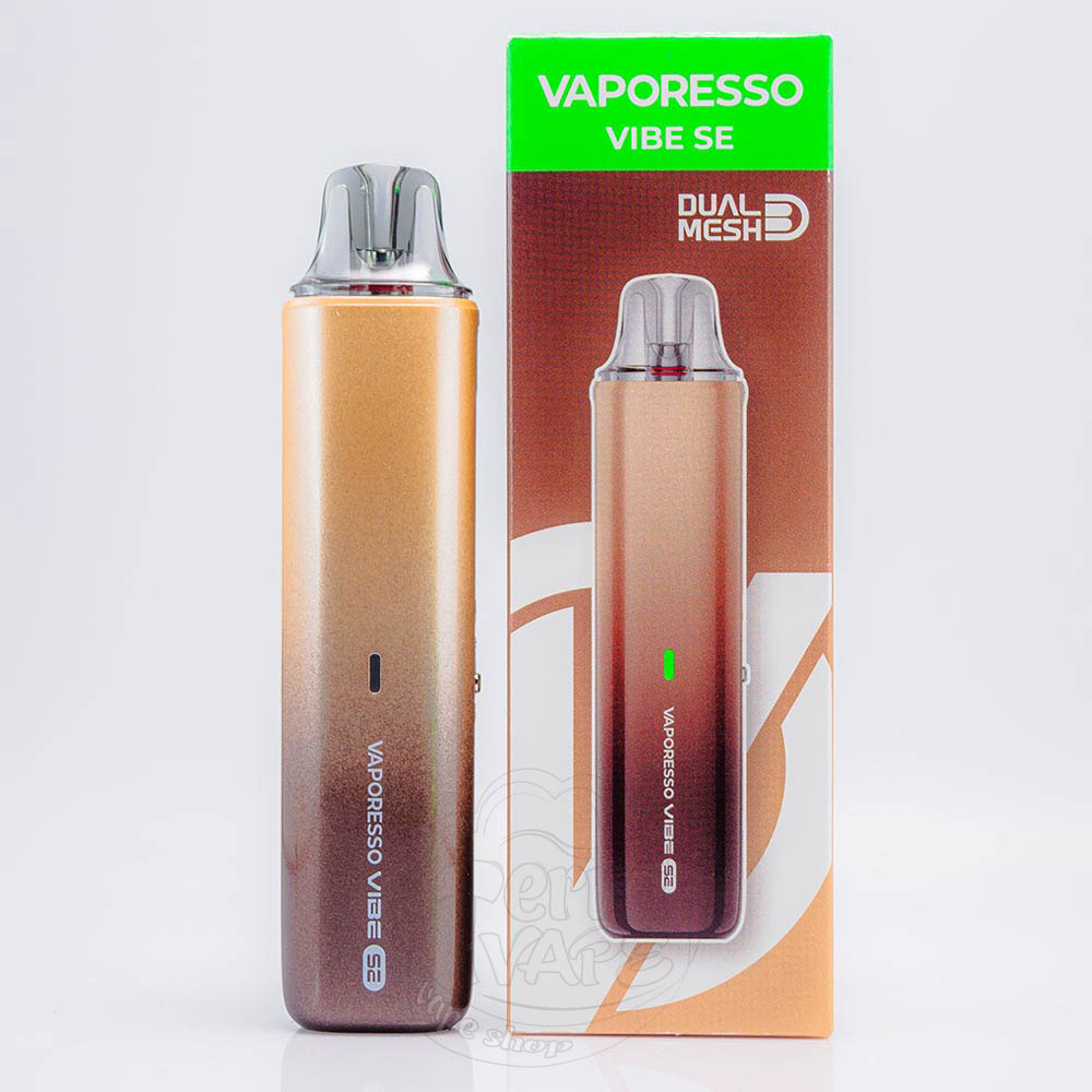 Vaporesso Vibe SE Pod System Kit 1100mAh Mocha Coffee - это многоразовая под-система коричневого цвета, новое дополнение яркой линейки Vibe от компании Vaporesso. Емкость аккумулятора устройства составляет 1100мАч, а объем картриджа - 4.5мл. Под-система предоставляет возможность легко менять режимы работы и тугость затяжки с помощью мультифункционального слайдера на боковой панели. На передней панели расположен цветной индикатор заряда.