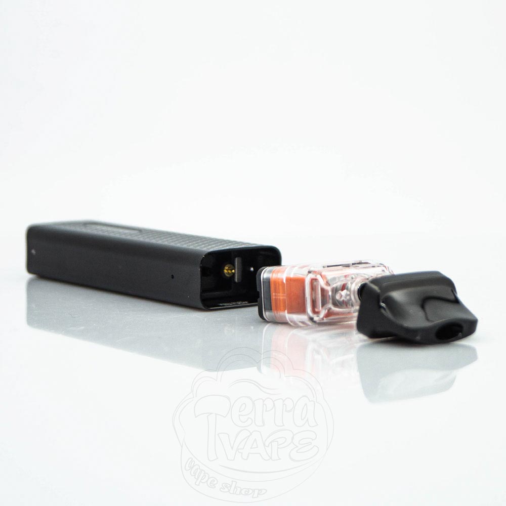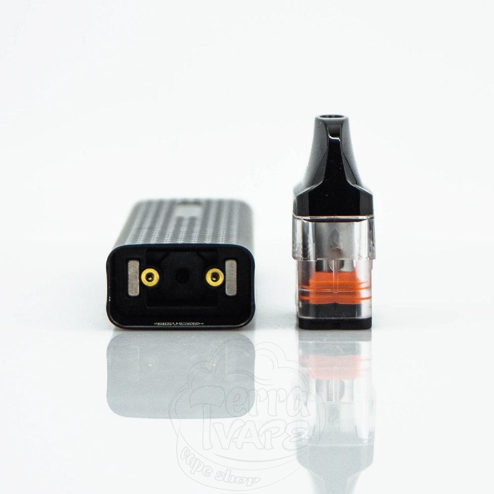 Картридж фіксується в батарейному блоці за допомогою досить потужних магнітів. Такий спосіб кріплення не тільки надійно утримує POD на місці, а й надає швидкий і зручний спосіб вилучення його з девайса, щоб, наприклад, протерти конденсат або під час заряджання з причини, зазначеної вище.