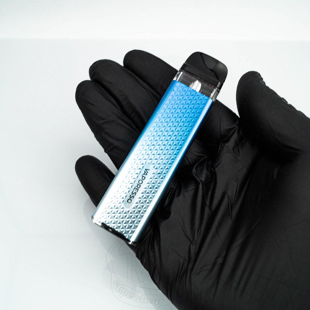 На перший погляд, Vaporesso XROS 3 Mini - досить компактний пристрій зі стильним зовнішнім виглядом. Завдяки заокругленим краям він має ергономічну форму, яка зручно лягає в руки. Крім того, тривимірний алмазний візерунок на передній панелі дає змогу хватко утримувати девайс під час паріння. Загалом корпус маленький (висота 99.2 мм, ширина - 23.6 мм, а довжина - 13.8 мм) і легкий (41 г), що робить його портативним і зручним для носіння в сумці або кишені.