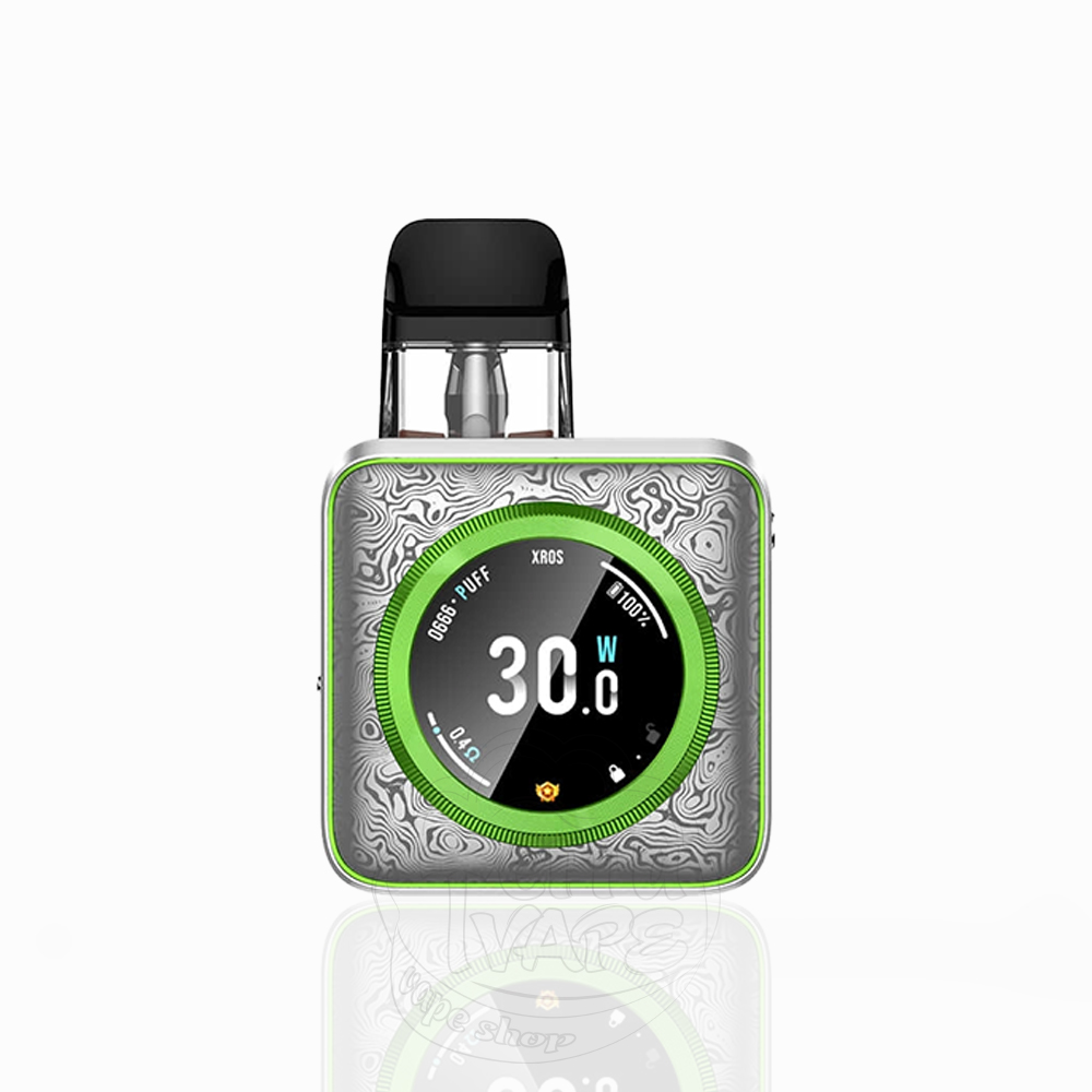 Vaporesso Xros 5 Nano Pod Kit 1600mAh Damascus Silver - це багаторазова POD-система версії Nano п'ятого покоління лінійки Xros, сріблясто-зеленого кольору від широко відомої компанії Vaporesso. Девайс працює від вбудованого акумулятора ємністю 1600mAh та видає максимальну потужність 30W. Підтримує швидку зарядку 5V/2A від порту Type-C.