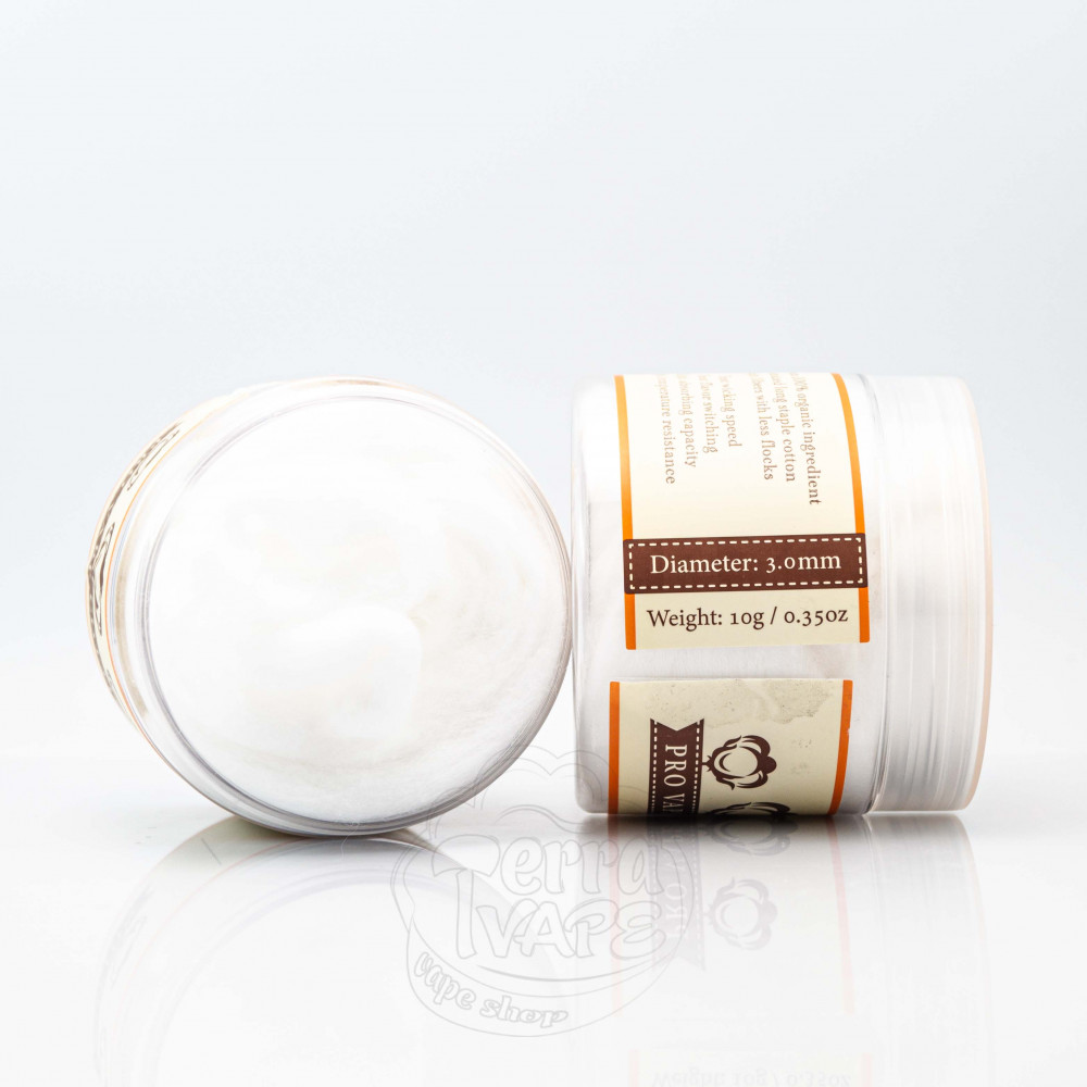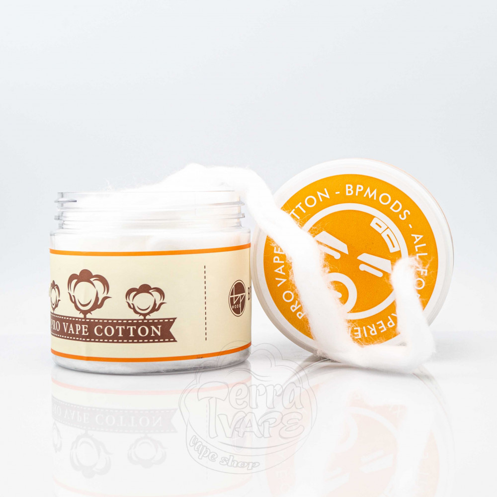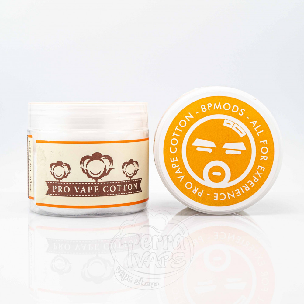 Вата BP Mods Pro Vape Cotton (3мм/2.5mm) - це вата для вейпінгу від компанії BP Mods. Поставляється в пластиковій баночці, в яку акуратно покладено моток вати для спіралей з діаметром 3мм або 2.5мм.