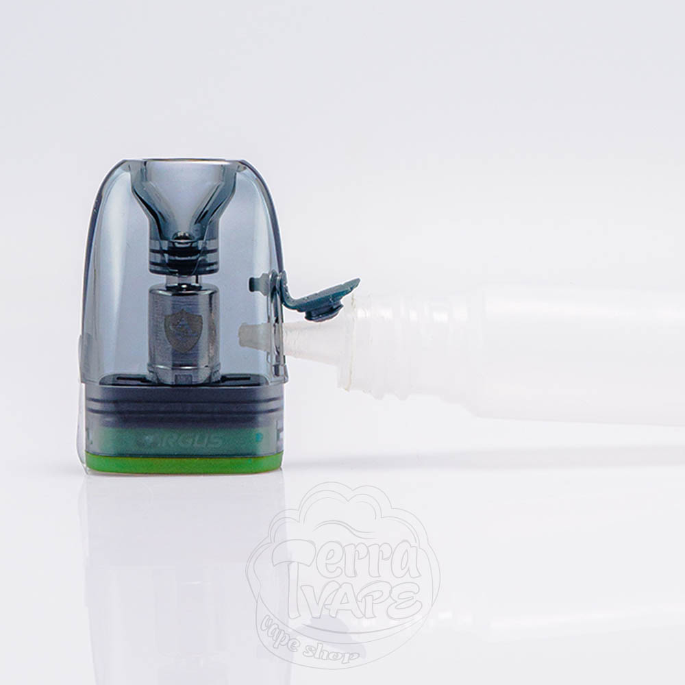 Под-система сумісна із усіма картриджами лінійки Argus та підтримує використання зв'язки порожнього картриджа і випарника. В комплекті з пристроєм ви отримаєте два картриджі із верхньою заправкою та резервуарами об'ємом 3 мл.