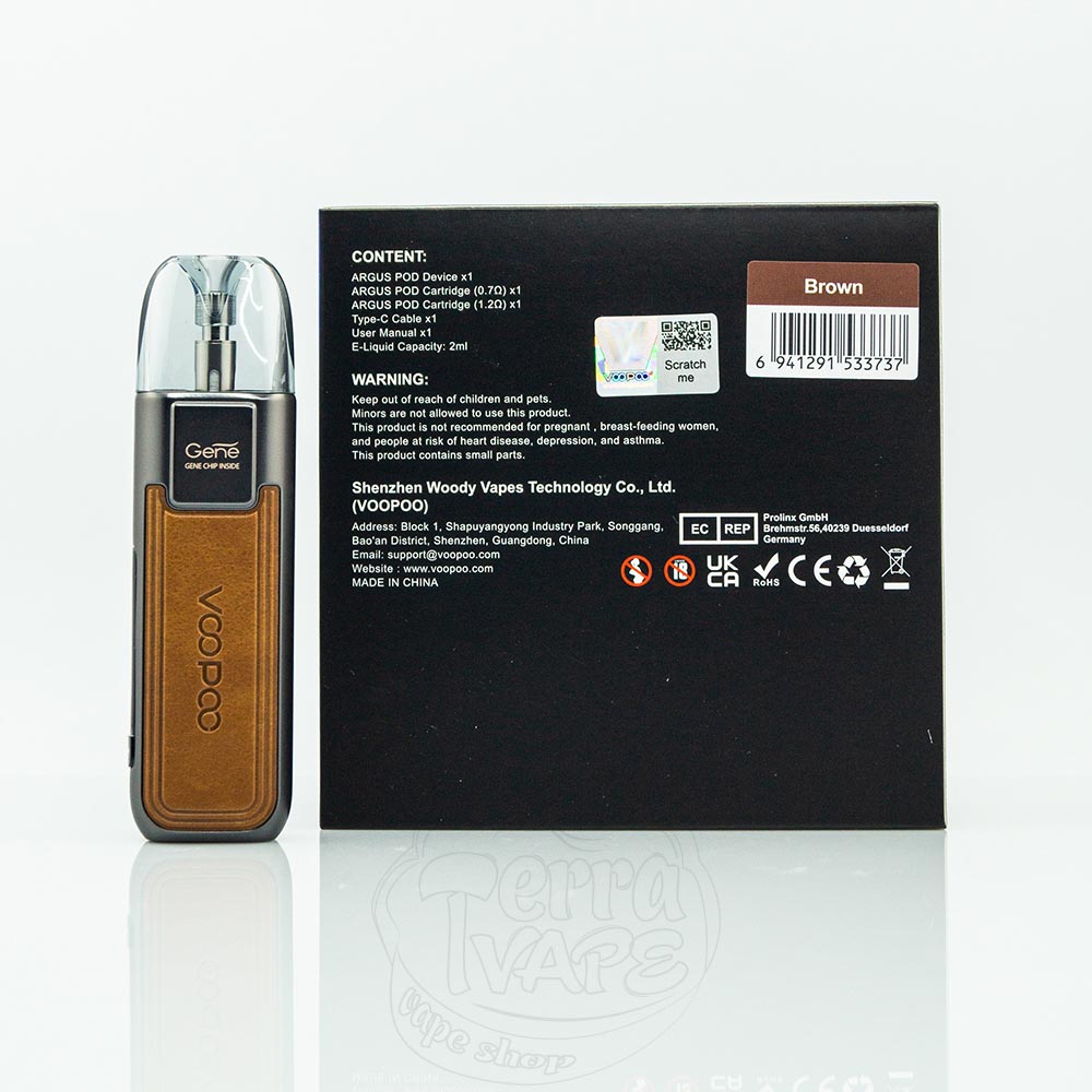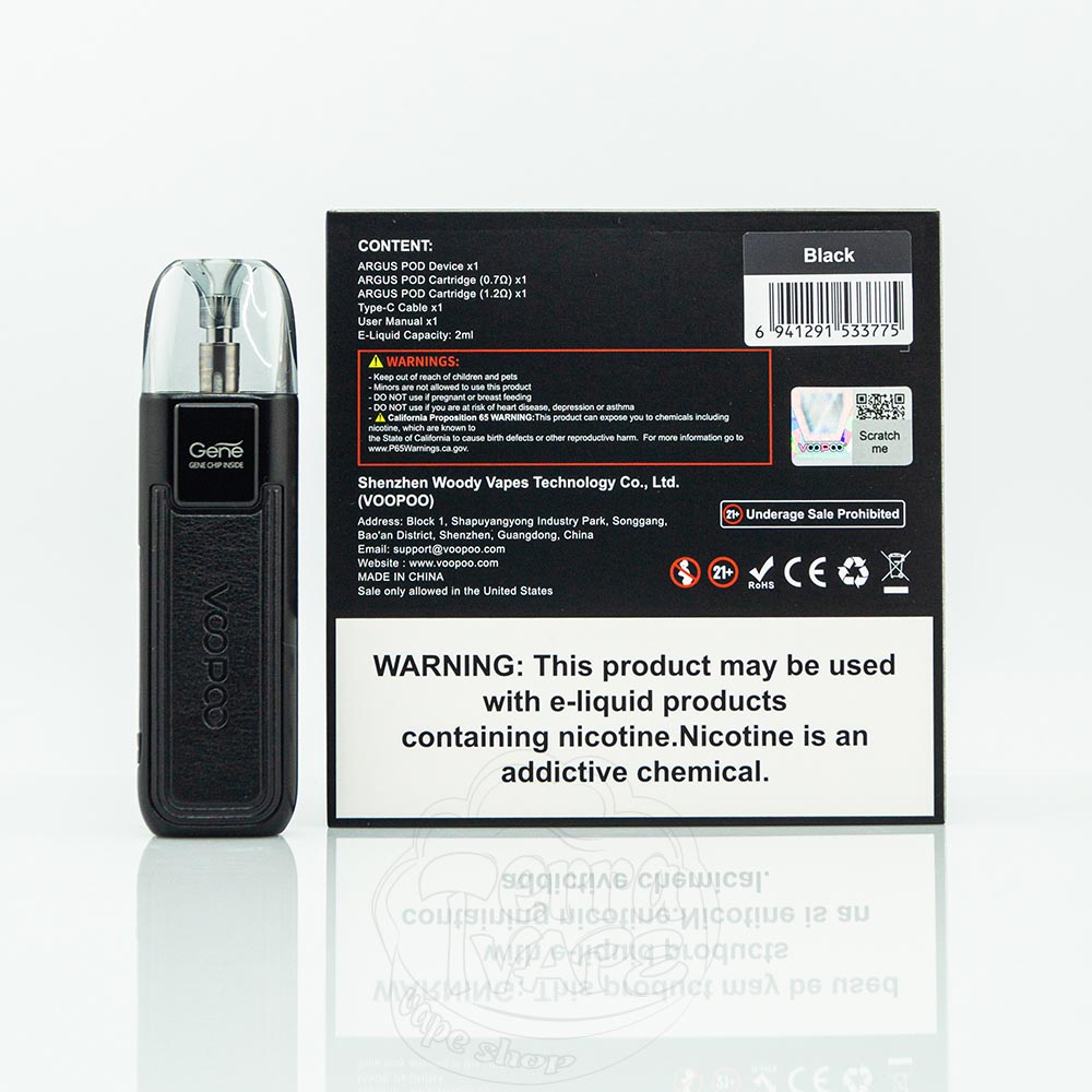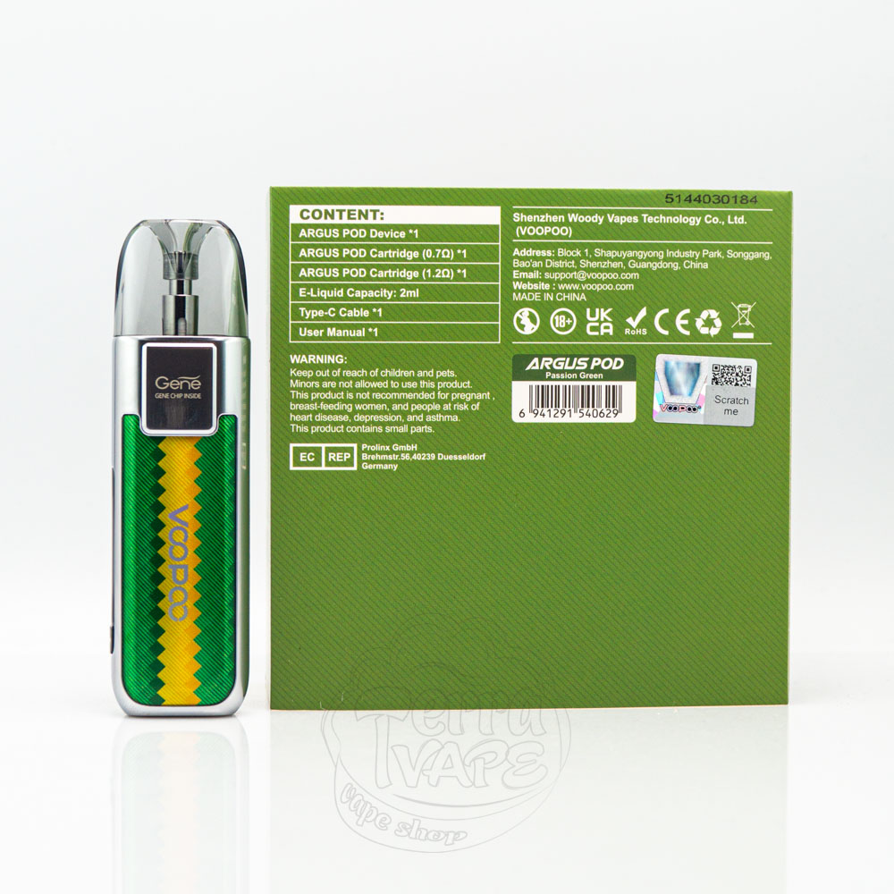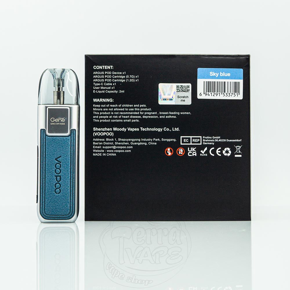 VooPoo Argus Pod Kit 20W 800mAh – це багаторазова под система із серії Argus від компанії VooPoo. Працює від вбудованого акумулятора ємністю 800мАч зі змінними картриджами об'ємом 2мл. Активується від затяжки. Має компактний розмір і стильний зовнішній вигляд, тому відмінно підійде як пристрій щодня, в тому числі і для новачків.
