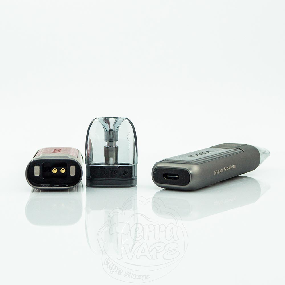 Картридж має ергономічну форму, завдяки чому комфортно відчувається під час паріння. Нагрівальний елемент – вбудований, що означає повну заміну картриджа після закінчення терміну служби. Це відбувається в середньому після 2-7 перезаправок.