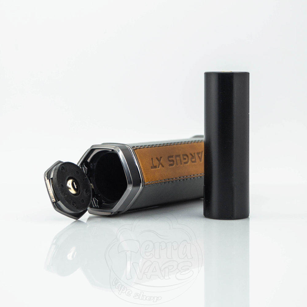 Argus XT з регульованою потужністю від 5 до 100W покритий бронею з цинкового сплаву і великою шкіряною спинкою. Продумане поєднання елегантності та міцності! Хоча він дуже схожий на свого брата-близнюка (Argus MT), цей бокс для одного акумулятора підкреслює свою індивідуальність завдяки назві, вигравіруваній на його корпусі. Гачок, вбудований у верхню частину, дає змогу носити його на шиї, використовуючи відповідний ремінець (не входить до комплекту).