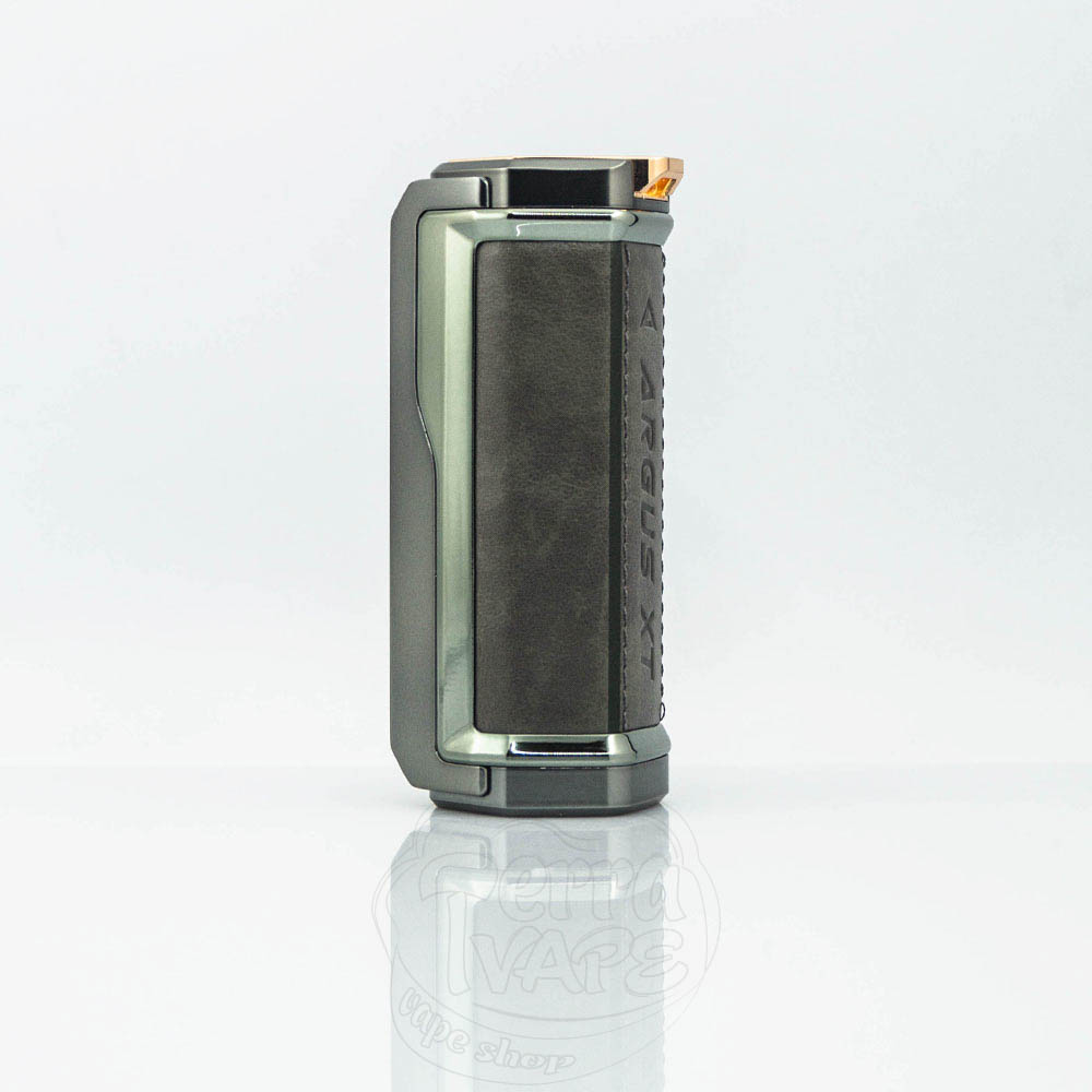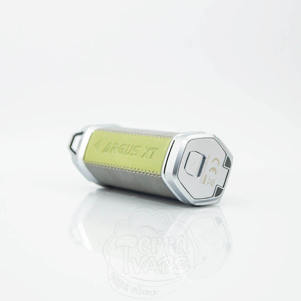 Посадковий майданчик бокс-мода Argus XT призначений для встановлення атомайзерів з максимальним діаметром 26 мм. Основа боксу має дві нековзні силіконові накладки, які значно знижують ризик падіння. На передній частині мода розташовані ергономічна кнопка Fire, засувка ручного блокування, великий кольоровий екран, 2 кнопки регулювання, а також порт USB-C 5V/3A. Роз'єм для зарядки закритий спеціальною заглушкою, яка не тільки органічно вписується в загальний зовнішній вигляд, а й захищає від потрапляння пилу всередину.