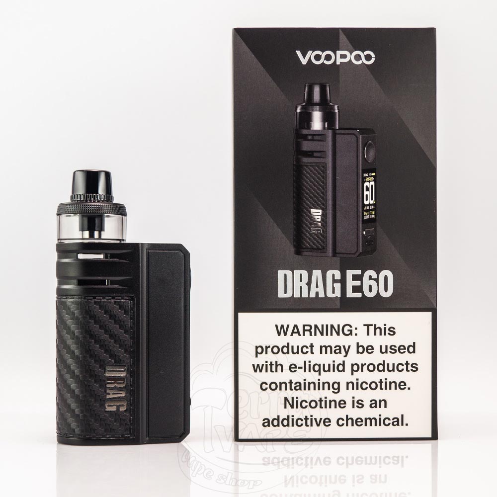 VooPoo Drag E60 Kit - это один из под модов линейки Drag от именитой компании VooPoo. Энергию для работы устройства предоставляет встроенный аккумулятор емкостью 2550мАч. Электронная сигарета способна достичь мощности 60W. Работает с картриджами второго поколения в двух вариантах объема (4.5 или 5мл), в зависимости от комплектации. Такие картридж совместимы со всеми испарителями PnP серии. Самое низкое допустимое сопротивление составляет 0.1Ом. Вейп заряжается с помощью кабеля Type-C, который входит в набор. Имеет две линейки оформления, одна из которых содержит декорированные панели.