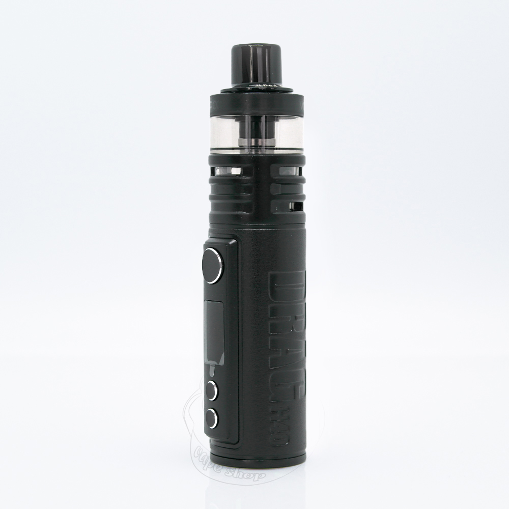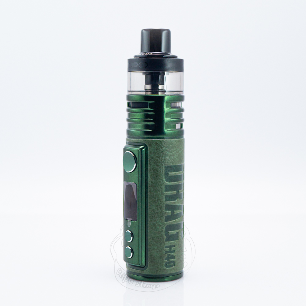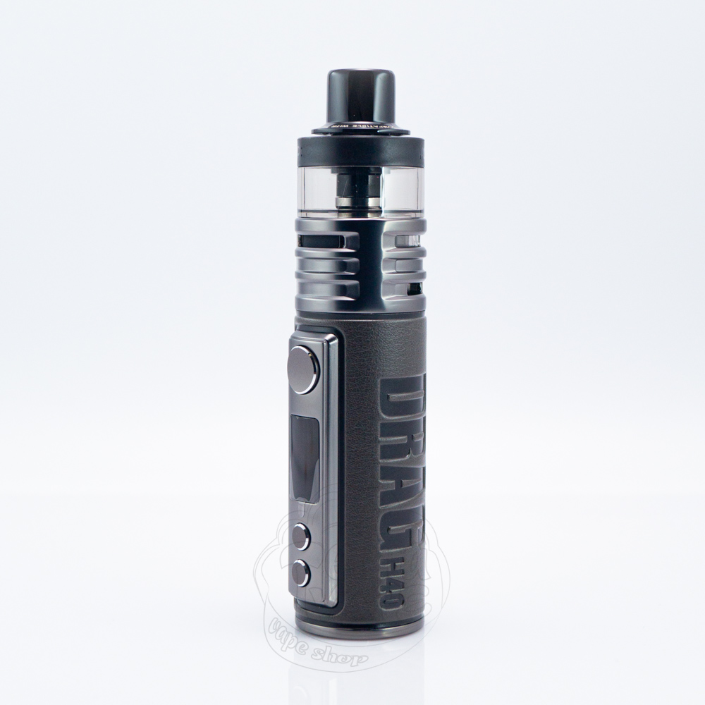 Драг Н40 має циліндричний форм-фактор та є одним з найкомпактніших пристроїв лінійки, особливо його розміри вражають, якщо брати до уваги потужність, яку він здатен відтворювати. Вейп має висоту 104.5мм, ширину 27.5мм і глибину 26.1мм. Завдяки такій заокругленій формі девайс зручно лягає в руку, а шкіряне оздоблення придає не тільки вишуканого вигляду, а й робить поверхню більш чіпкою та приємною на дотик.