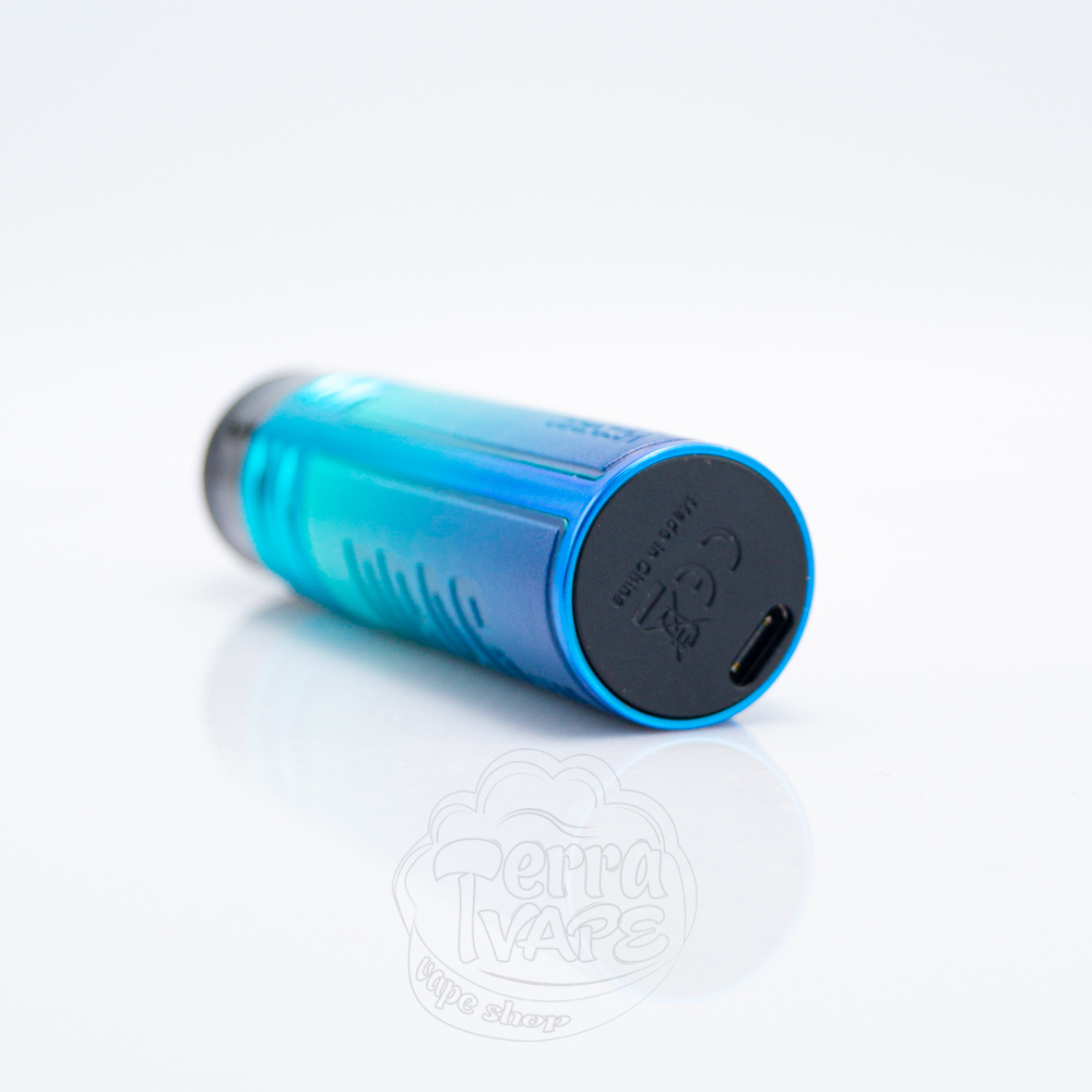 У верхній частині є великий металевий обідок, який також має прорізи для регулювання обдуву. Зарядний порт знаходиться на дні основи, що може бути не дуже зручним, оскільки під час живлення треба буде класти електронну сигарету на бік.