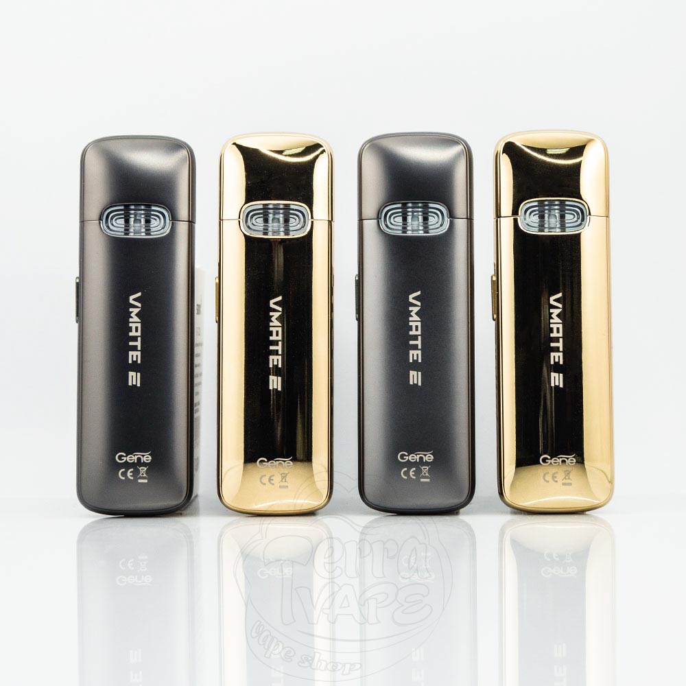VMate E сумісний із картриджами VMate V2 та V.Thru Pro. Вміщують до 3 мл рідини для електронних сигарет і мають прозорий резервуар, виготовлений з харчового PCTG. Доступні в різних значеннях опору із вбудованим нагрівальним елементом.