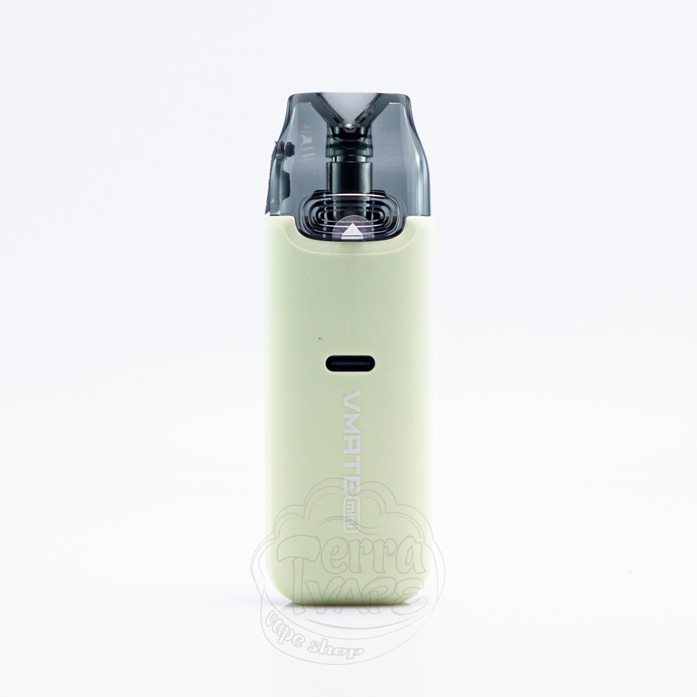 Voopoo Vmate Mini Pod System Kit 1000mAh Matcha Green - це міні-версія популярної багаторазової pod-системи серії Vmate, світло-зеленого кольору від компанії Voopoo. Пристрій має вбудований акумулятор на 1000мАг з максимальною вихідною потужністю 30Вт. Працює з цільними картриджами об'ємом 3мл, а заправка відбувається через отвір, розташований у верхній частині резервуара. Вмейт міні не має екранів або додаткових налаштувань, тільки 4 світлові індикатори для відображення заряду батареї і роботи пристрою. Активується - від затяжки.