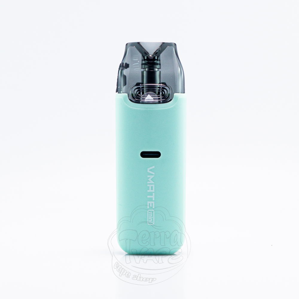 Voopoo Vmate Mini Pod System Kit 1000mAh Tiffany Green - це міні-версія популярної багаторазової pod-системи серії Vmate, бірюзового кольору від компанії Voopoo. Пристрій має вбудований акумулятор на 1000мАг з максимальною вихідною потужністю 30Вт. Працює з цільними картриджами об'ємом 3мл, а заправка відбувається через отвір, розташований у верхній частині резервуара. Вмейт міні не має екранів або додаткових налаштувань, тільки 4 світлові індикатори для відображення заряду батареї і роботи пристрою. Активується - від затяжки.