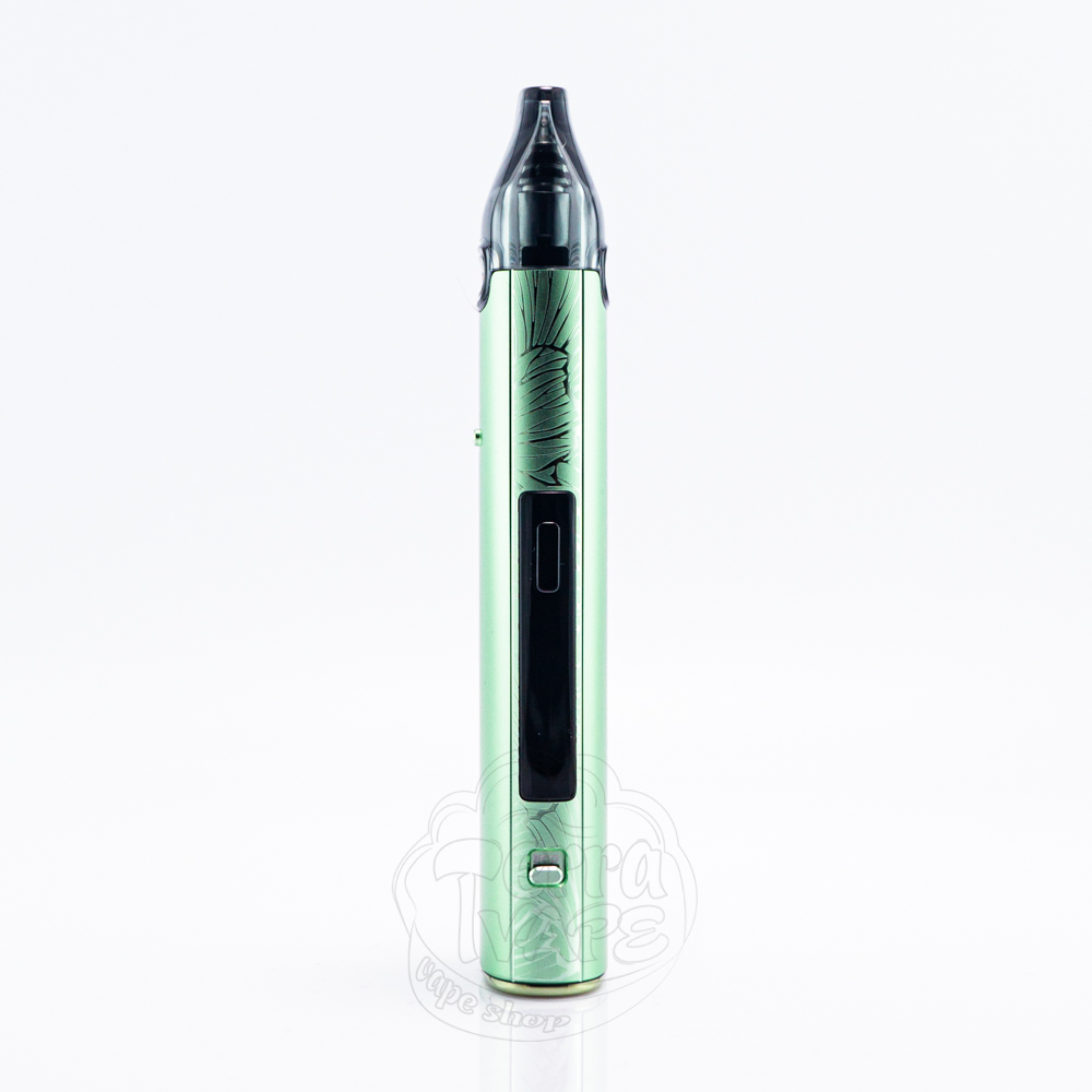 На бічній стороні знаходиться вертикальний OLED-дисплей, що відображає робочі параметри - потужність, рівень заряду, опір картриджа та іншу інформацію. Нижче розміщені перемикач режимів і клавіша управління. А на лицьовій стороні помітний слайдер регулювання тугості затяжки.