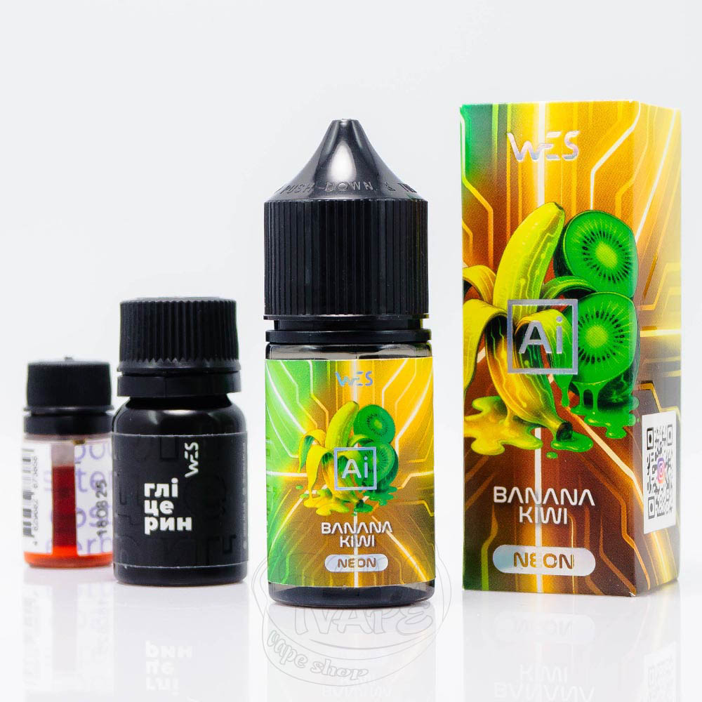 WES AI Neon Salt Banana Kiwi 30ml 50mg - це набір для самостійного замішування рідини з тропічним поєднанням солодкого банану з кислуватим та соковтим ківі.