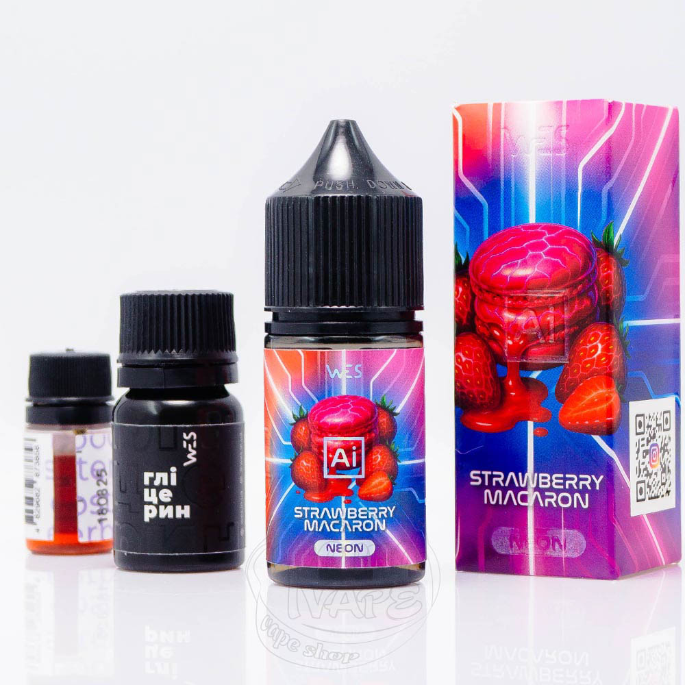 WES AI Neon Salt Strawberry Macaron 30ml 65mg - це набір для самостійного замішування рідини з десетним смаком французського полуничного макарону з мигдалевою і кремовою нотками на видиху.