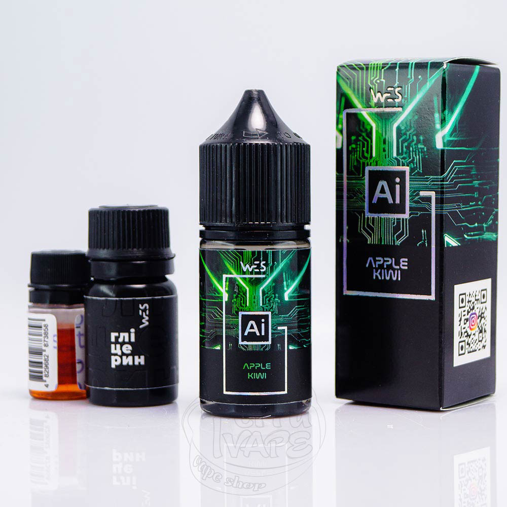 WES AI Salt Apple Kiwi 30ml 50mg - це набір компонентів для змішування рідини з кисло-солодким смаком зеленого яблука з ноткою ківі на післясмаку.