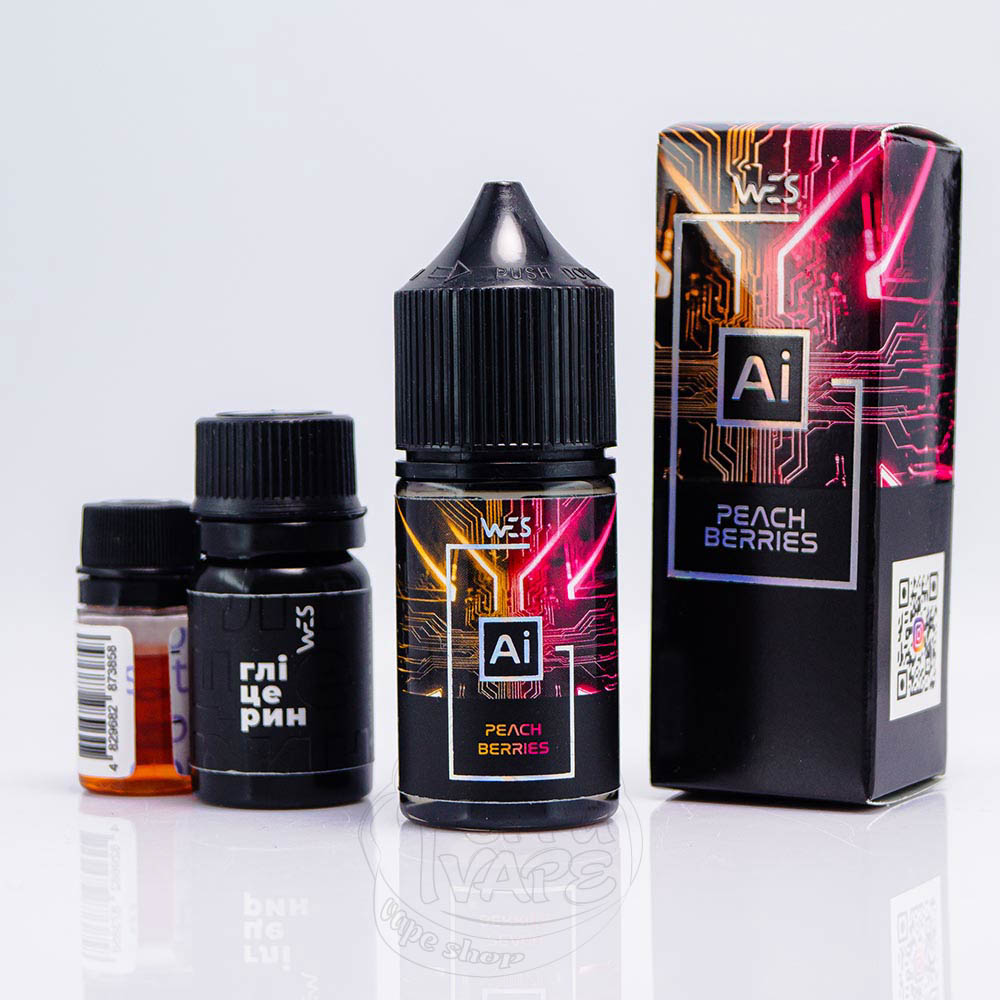 WES AI Salt Peach Berries 30ml 50mg - це набір для приготування рідини зі смаком стиглого персика з приємною ягідною кислинкою в післясмаку.