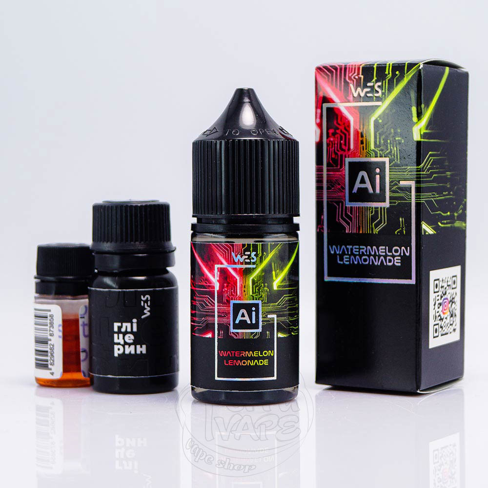 WES AI Salt 30ml - це лінійка наборів для самостійного приготування рідини від відомого українського виробника WES. Після змішування всіх компонентів об'єм становитиме 30 мл. Співвідношення гліцерину до пропілену 50/50, тому рідина чудово підійде для використання з малопотужними електронками, в першу чергу з багаторазовими под-системами. Міцність може бути 50мг/мл або 65мг/мл, однак, за рахунок формату самозамісу, користувач може самостійно регулювати фінальну міцність, виливаючи тільки частину бустера або повністю ігноруючи даний компонент.