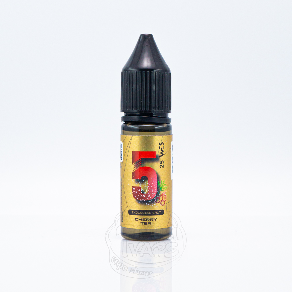 Wes Gold Line Salt #5 Cherry Tea 15ml 25mg - це рідина для вейпу зі смаком солодкого вишневого чаю. Злегка гіркуваті чайні нотки об'єдналися з кисло-солодкою соковитою вишньою, що надає смаку елегантного акценту. В серії смак позначений номером 5.
