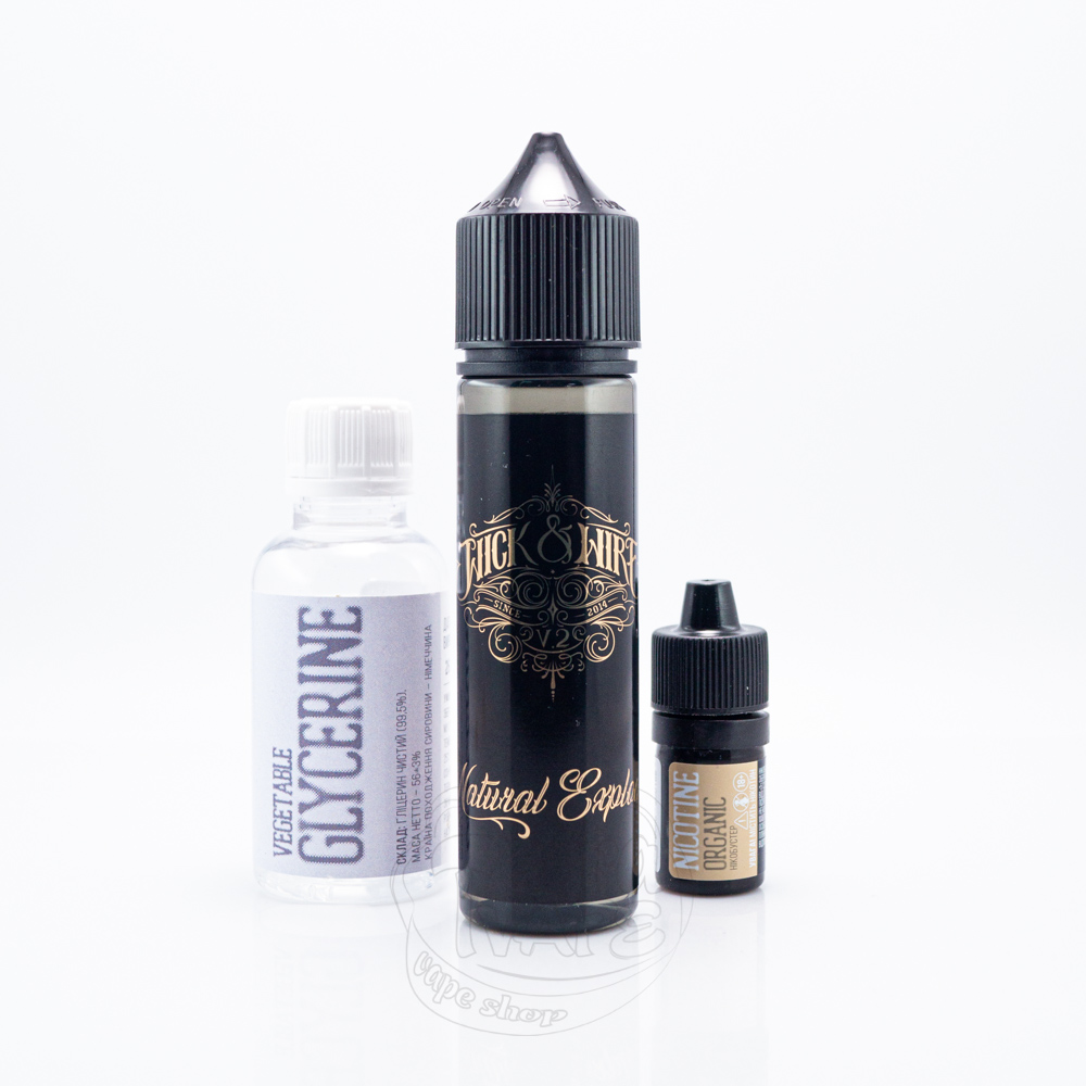 Wick&Wire v2 Organic - це набір для приготування органічної рідини від українського виробника LiqLab. Об'єм фінального продукту становить 60 мл, а VG/PG - 70/30. Комплектний бустер передбачає фінальну міцність - 3 мг/мл, проте ви можете регулювати її самостійно. Дизайн флакона має чорний стриманий стиль і золотисті написи курсивом.