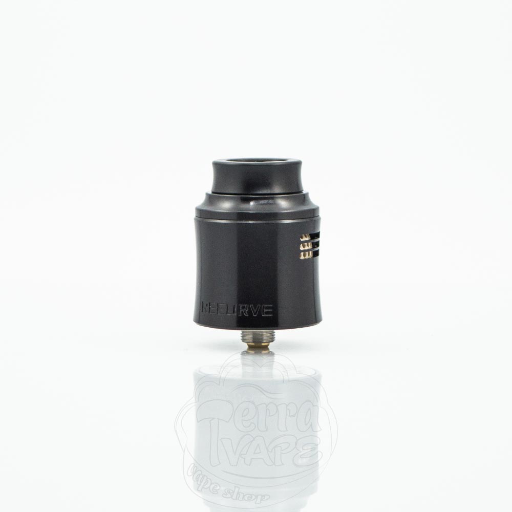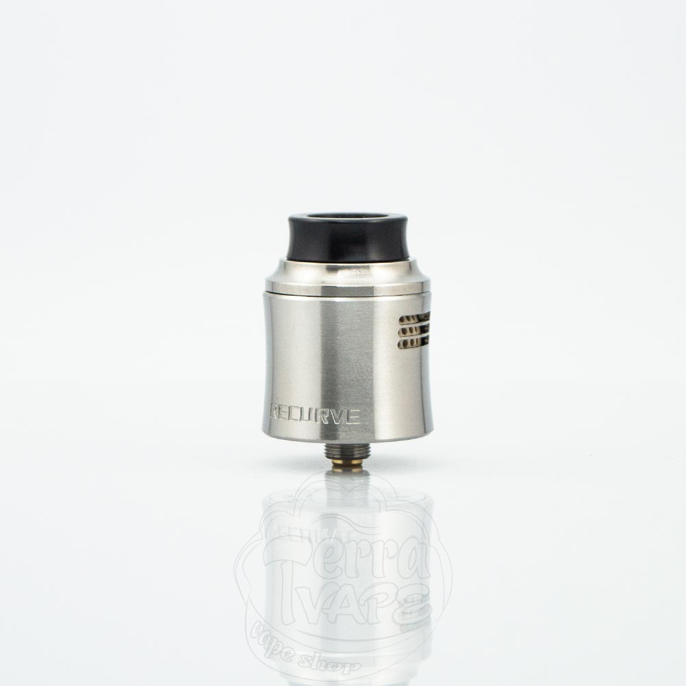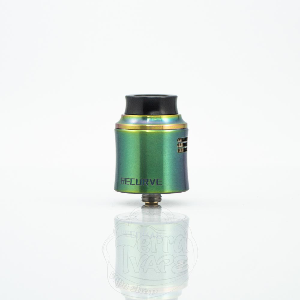 Recurve V2 має діаметр 24.6мм, що добре для двоспіральної RDA. Якщо використовувати її на меншому однобатарейному моді, дріпка може трохи виступати, але на більшості двобатарейних вейпах вона повинна сидіти врівень з корпусом.