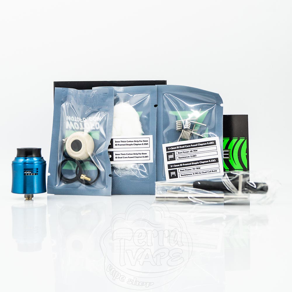 WOTOFO Recurve V2 RDA - це оновлена версія дріпки Recurve RDA, розроблена компанією WOTOFO у колаборації з ютуб блогером Mike Vapes. Атомайзер розрахований на встановлення однієї або двох спіралей та має діаметр 24.6мм. Бічний обдув реалізований цікавим способом - виробник використовує спеціальні адаптери, які встановлюються залежно від кількості спіралей. Дріпка нескладна у обслуговуванні за рахунок простої деки без стойок, тому відмінно підійде для поціновувачів насиченої смаком пари незалежно від досвіду користування.