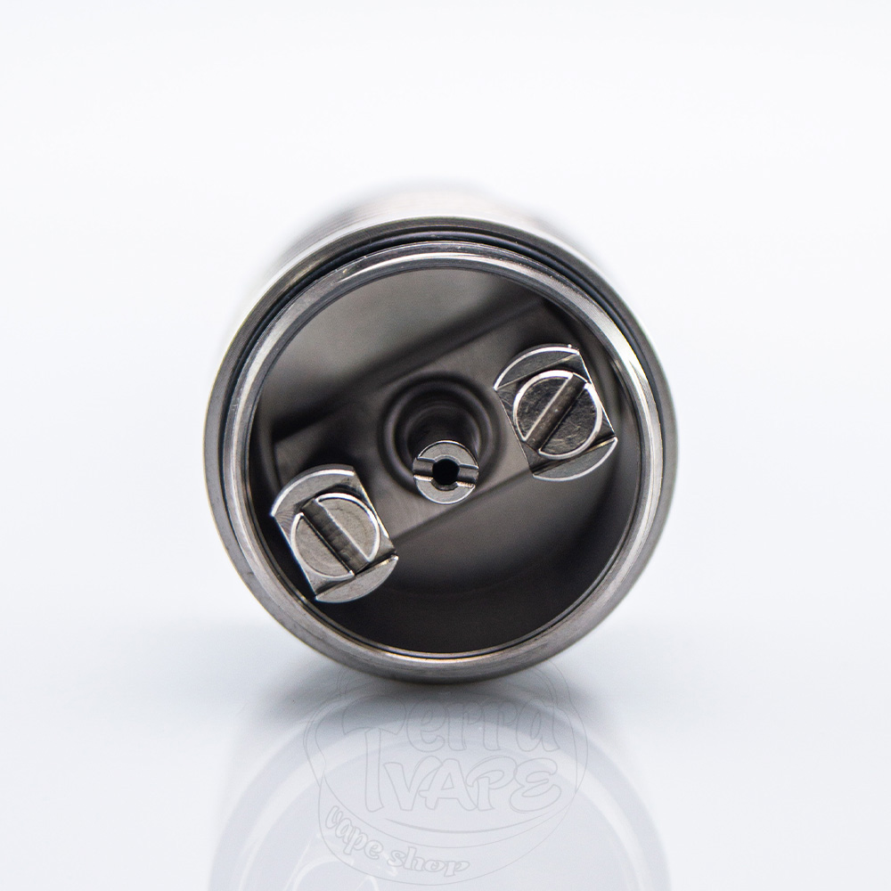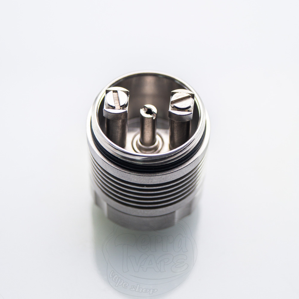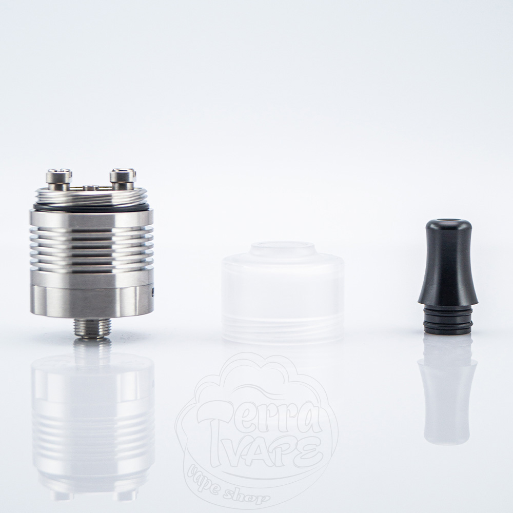 Діаметр бази становить 22 мм. Вгорі розташувався 510 дріп-тип. З коробки встановлена пластикова колба на різьбі, яку можна замінити на комплектну металеву, надавши атомайзеру ще більш брутального зовнішнього вигляду.
