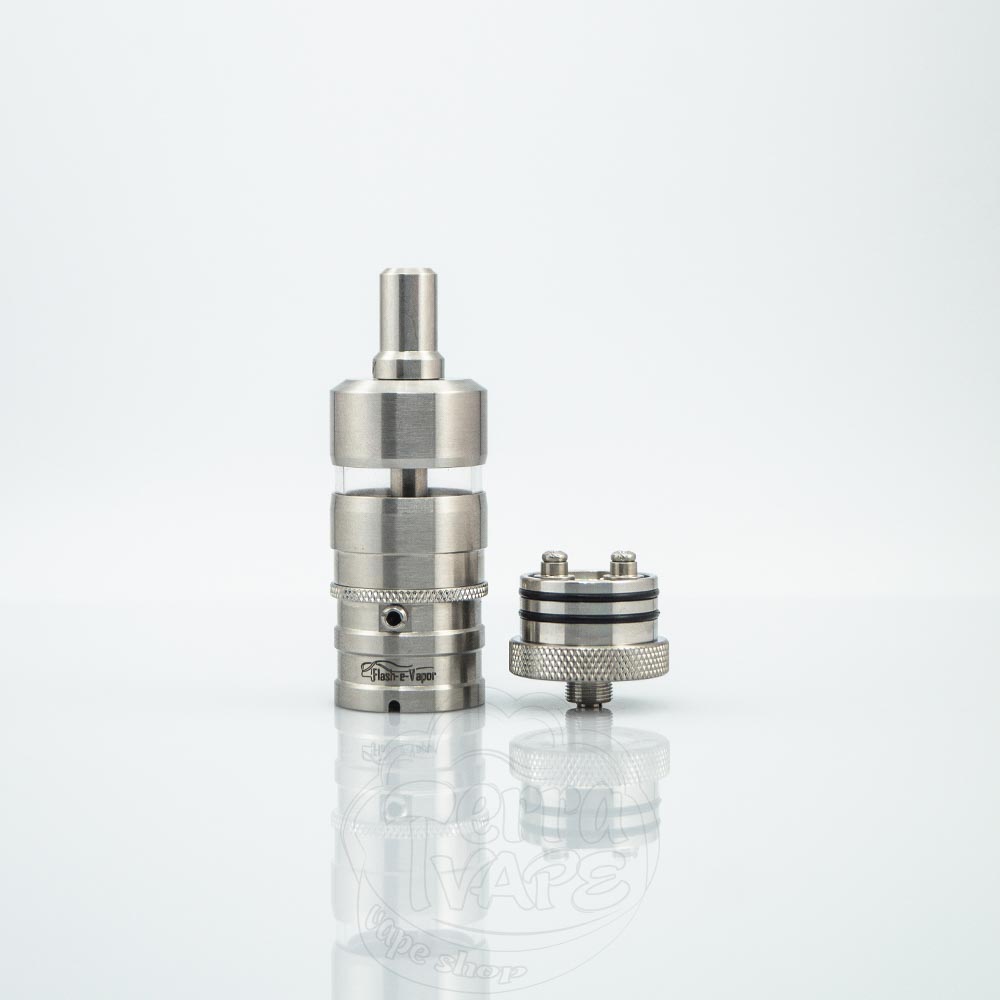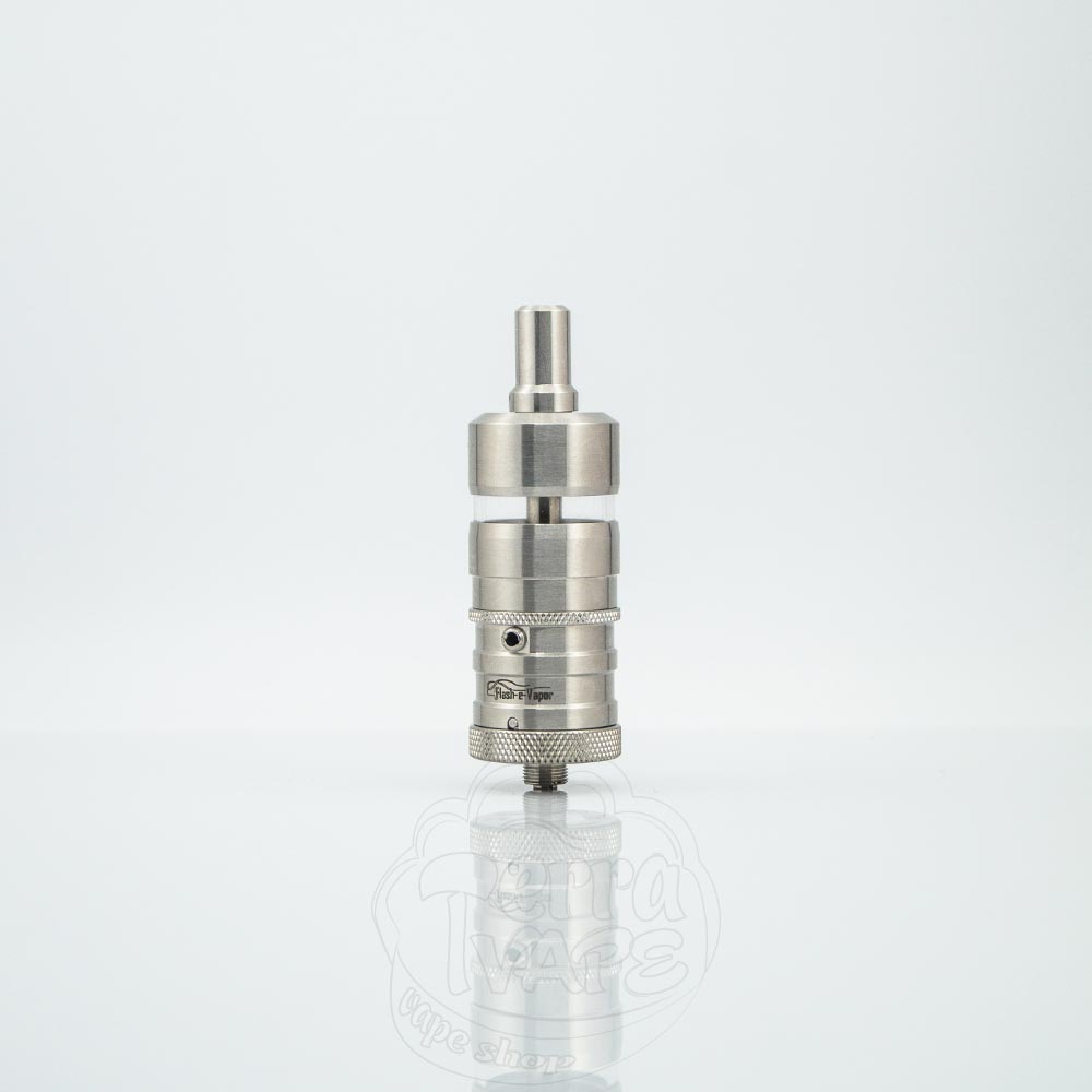 YFTK Flash-e-Vapor v4.5S+ MTL RTA - це клон німецького бака Flash-e-Vapor версії v4.5S+ від знаменитого китайського виробника YFKT. Діаметр бази становить 23 мм, об'єм резервуара - 4.5 мл. Нижня заправка і бічний обдув. Тугість затяжки регулюється змінними зовнішніми жиклерами. Бак вирізняється досить великим форм-фактором і відмінною смакопередачею.