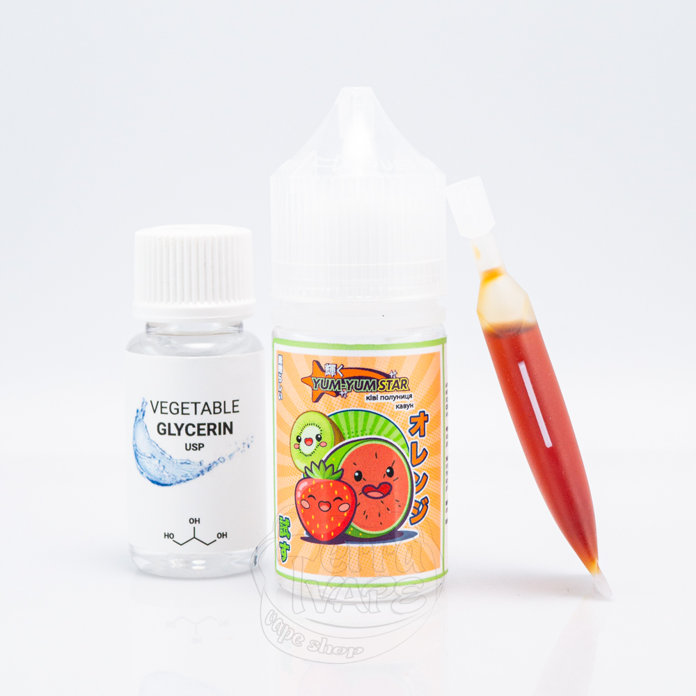 Yum-Yum Star Salt 30ml - це набір для самостійного приготування жижки для електронних сигарет від українського виробника Elixir Factory. Він був створений спеціально для використання з малопотужними вейп-пристроями, такими як pod-системи, адже співвідношення гліцерину до пропілену дорівнює 50/50. Міцність доступна у трьох рівнях, які ви можете обирати відповідно до своїх вподобань: