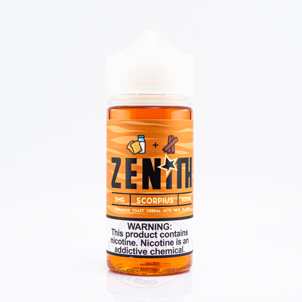 Zenith Organic Scorpius 100ml 3mg - насичений смак класичних пластівців зі смаком кориці. Спробуйте снідати весь день з цією ностальгічною, домашньою сумішшю хрустких пластівців, кориці, коричневого цукру і невеликої кількості молока.