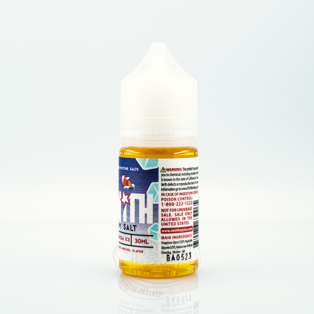 Zenith Salt - це сольові рідини від американського виробника Zenith, який почав свій шлях у сфері вейпінгу з 2014 року і встиг підкорити безліч сердець користувачів електронних сигарет. З моменту випуску їхньої першої хітової рідини Orion минуло багато років, і компанія стрімко розвивалася, йдучи в ногу з часом, випустила сольову версію своїх рідин, щоб відповідати трендам індустрії.