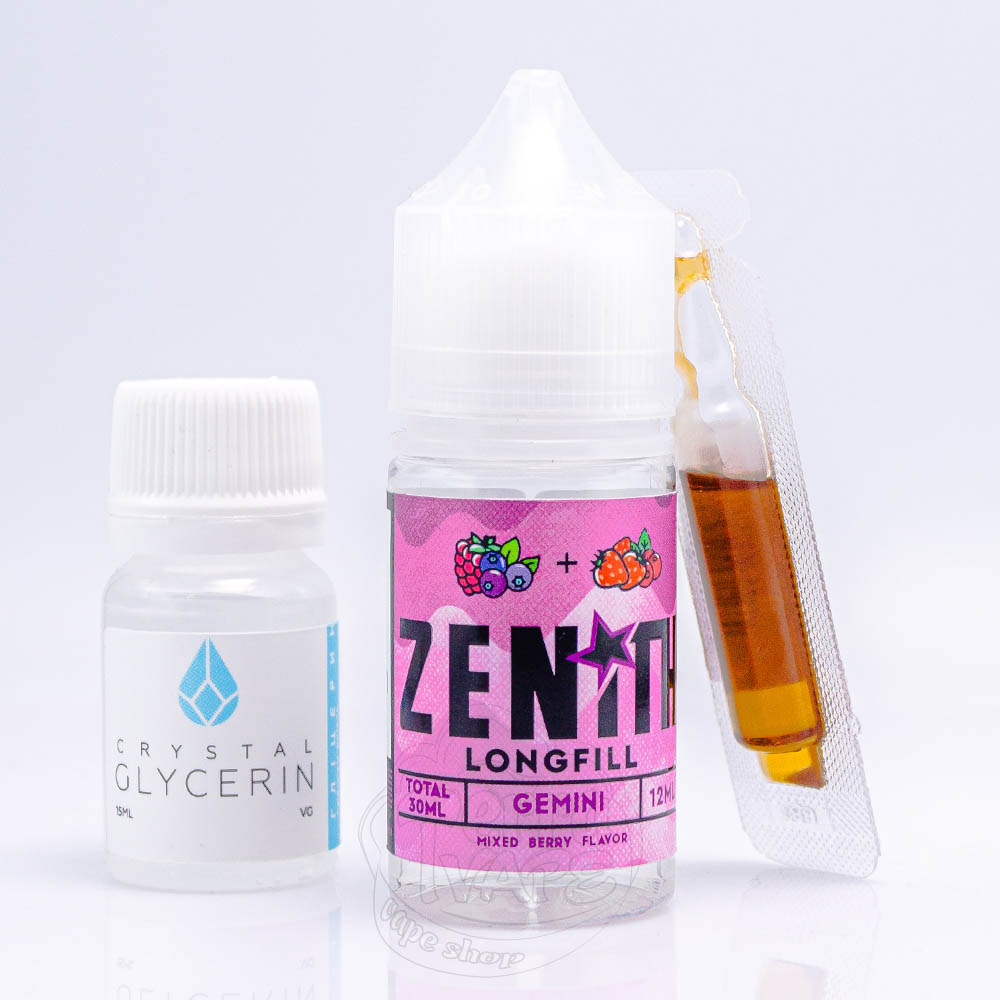 Zenith Salt Gemini 30ml 50mg - це набір для змішування рідини з поєднанням полуниці з нотками червоної та чорної смородини. Солодкий аромат полуниці збалансований кислинкою червоної і терпкістю чорної смородини, зливаючись в єдиний багатошаровий смак.