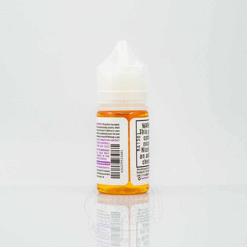 Zenith Salt - це сольові рідини від американського виробника Zenith, який почав свій шлях у сфері вейпінгу з 2014 року і встиг підкорити безліч сердець користувачів електронних сигарет. З моменту випуску їхньої першої хітової рідини Orion минуло багато років, і компанія стрімко розвивалася, йдучи в ногу з часом, випустила сольову версію своїх рідин, щоб відповідати трендам індустрії.