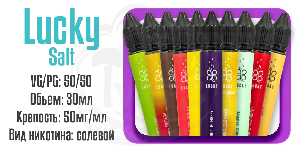 Линейка наборов Lucky Salt предназначена для использования с электронными сигаретами, которые работают на небольшой мощности, а таковыми являются многоразовые pod-системы. Поскольку это солевые жижки с соотношением VG/PG 50/50 и высокой концентрацией никотина (50мг/мл), для мощных устройств они не подходят и если вы попробуете залить Лаки в атомайзер подобного девайса, то получите подтекание и перенасыщение никотином вместо приятного парения, поэтому всегда выбирайте жижу, соответствующую типу вашей электронной сигареты.