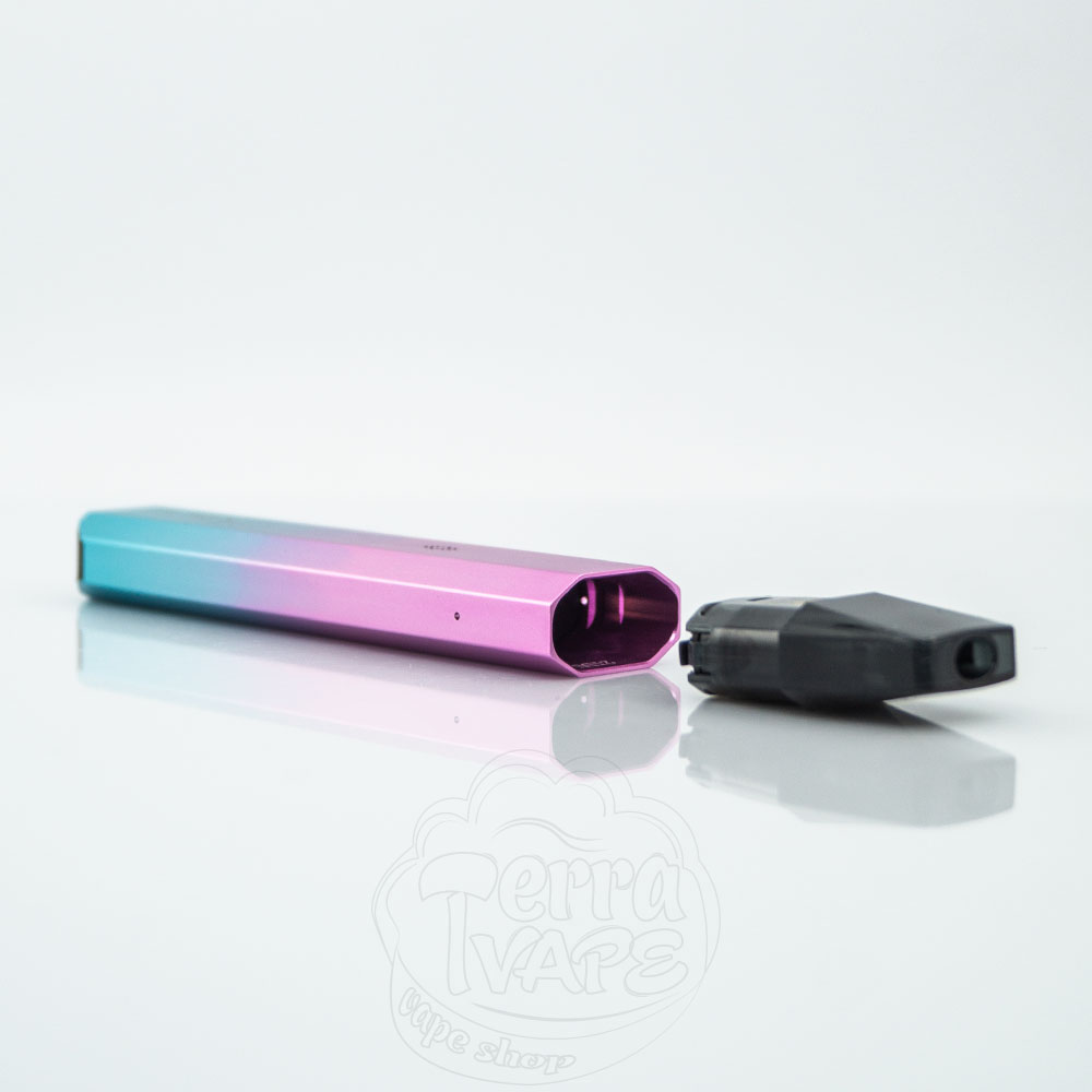 На лицьовій стороні розмістився індикатор, представлений безліччю маленьких отворів у формі ромбів, а в нижній частині вигравірувано назву моделі пристрою. Pod система представлена в 9 різних кольорах, щоб кожен міг підібрати найкращий варіант під свій стиль.